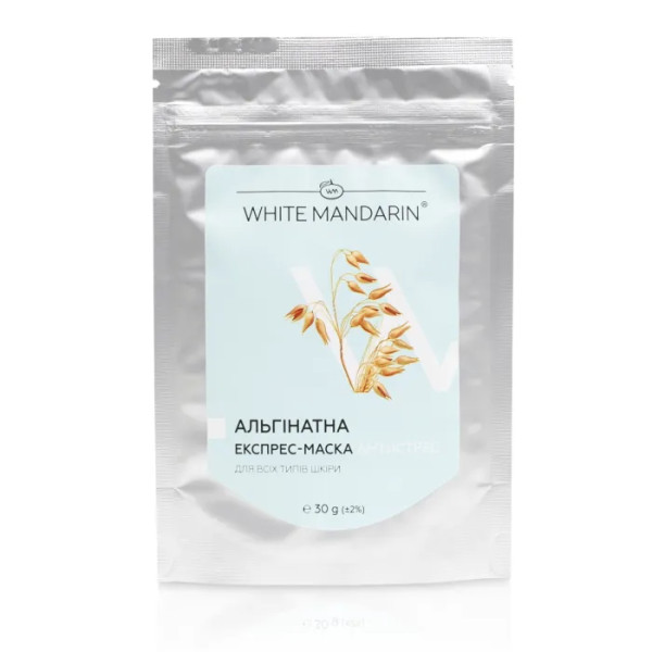 Альгінатна експрес-маска «Пророслі зерна» від White Mandarin призначена для всіх типів шкіри та допомагає швидко відновити свіжість та сяйво обличчя. Вона ефективно усуває сліди втоми та стресу, покращуючи колір та текстуру шкіри. Завдяки активній мінералізації маска сприяє виведенню токсинів, а також допомагає зменшити запалення та подразнення. Ефект ліфтингу, що досягається при використанні маски, обумовлений поліпшенням мікроциркуляції, що, своєю чергою, стимулює природне виробництво колагену та еластину. Це допомагає повернути шкірі пружність та еластичність, а також розгладити дрібні зморшки та нерівності.