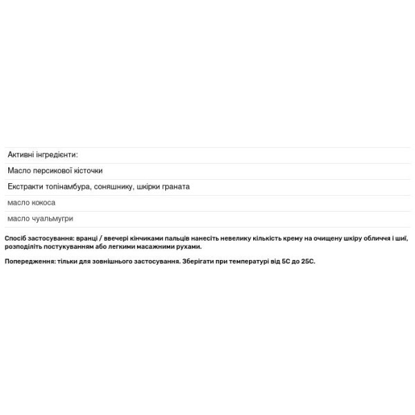 - Олія персикової кісточки – зволожує та живить шкіру, покращує її текстуру.