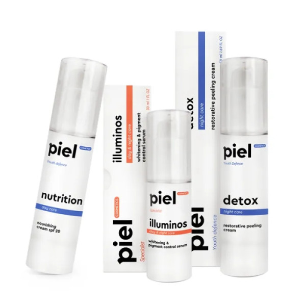 Набір "Корекція гіперпігментації (зима)" від Piel Cosmetics включає три унікальні продукти, які працюють в синергії для досягнення максимального ефекту. Цей набір спеціально розроблений для зимового догляду за шкірою, коли вона особливо потребує захисту та зволоження. Продукти в наборі допомагають уповільнити вироблення меланіну, зменшуючи видимість гіперпігментації та забезпечуючи надійний бар'єр від ультрафіолетового випромінювання.